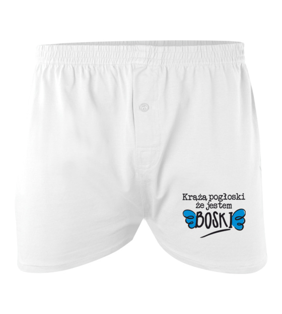 Czy jesteś boskim chłopakiem? Czy może jesteś aniołem, który na co dzień ukrywa swoje skrzydła? Bez względu na to, kim jesteś, mamy dla ciebie idealne bokserki! Nasz produkt "Krążą pogłoski że jestem boski" to doskonały wybór dla wszystkich tych, którzy chcą pokazać swoje poczucie humoru i pewność siebie. Ten śmieszny slogan przyciągnie uwagę i sprawi uśmiech przy każdym spojrzeniu na twoje bokserki.