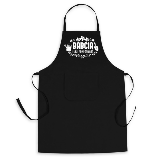 Fartuch utrzymany w klasycznym połączeniu bieli i czerni, ozdobiony napisem "Babcia lubi przesadzać", to doskonały sposób, aby nasza babcia codziennie przypominała sobie, że jest absolutną mistrzynią w przesadzaniu roślin. Niech każdy krok w tym fartuchu będzie dla niej przypomnieniem o jej ogrodowych pasjach i umiejętnościach.