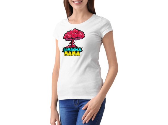 Na froncie tshirtu znajduje się napis "Bombowa mama" oraz grafika przedstawiająca wybuchającą bombę atomową, która symbolizuje powera Twojej mamy i dodaje mu humorystycznego twistu. Ten stylowy i odważny wzór na pewno przyciągnie uwagę i wywoła uśmiech na każdej twarzy.