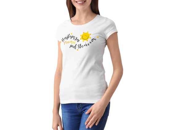 T-shirt bawełniany dla mamy, ozdobiony uroczym napisem "Najlepsza mama pod słońcem", uśmiechniętym słoneczkiem i serduszkami, to idealny sposób na pokazanie miłości i docenienie naszej ukochanej mamy.