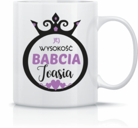 Na przedniej stronie kubka umieszczony jest wyjątkowy napis: "Jej wysokość babcia", który bez wątpienia oddaje niezwykłe znaczenie i rolę babci w naszym życiu. Ten krótki, acz wymowny komunikat mówi wszystko - babcia jest dla nas jak królowa, która zasługuje na wyjątkowe traktowanie i hołd.